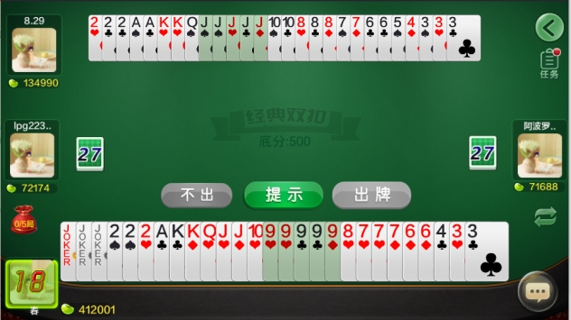 玩双扣还有一种精神就是团队合作精神,玩双扣和打麻将不一样,打麻将的指导思想是要“盯紧上家、憋死下家、仇视对家”,到处树敌,只希望自己一个人和牌;玩双扣则讲究团队协作,几局下来和谁都有过协作,有福同享、有难同当.如果把这种精神运用到工作中,团给就是力量,还有什么工作做不好呢?